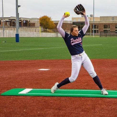 The days of constantly adjusting your pitching mat are finally over thanks to the experts at Portolite! Their spiked softball mat has over 5,000 spikes on the bottom to ensure a stable pitching mat for every pitch.