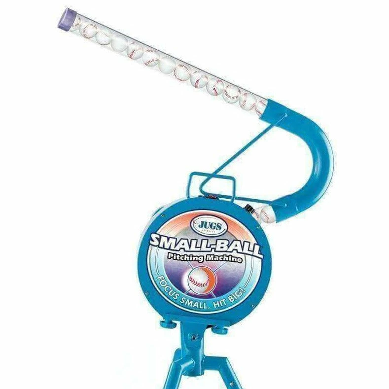 If you are looking for a training aid to improve hand-eye coordination and improve hitter’s focus, the JUGS Small-Ball Pitching Machine is a great tool The Small-Ball® Pitching Machine throws fastballs or overhand curves with uncanny accuracy at simulated speeds up to 75 mph. and is great for ground balls and fly balls.
