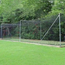 Enjoy quality construction and top-of-the-line features at a reasonable price. Twisted and knotted nets have a higher abrasion resistance than braided poly and they will not shrink or absorb water. These nets are hung on the square for a clean look and have a built-in door for easy entry and exit from the batting cage. Border ropes stitched to the net which secures the cage ensures it holds its form and reduces wear on the interior netting!